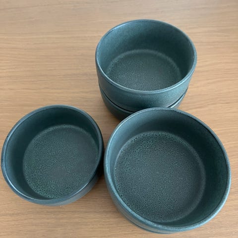 Fatene er godt brukt, og det er noen riper i de hvis man ser godt etter. Se bilde.
