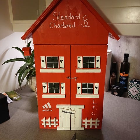 Håndlaget Manchester United fuglehus bar.