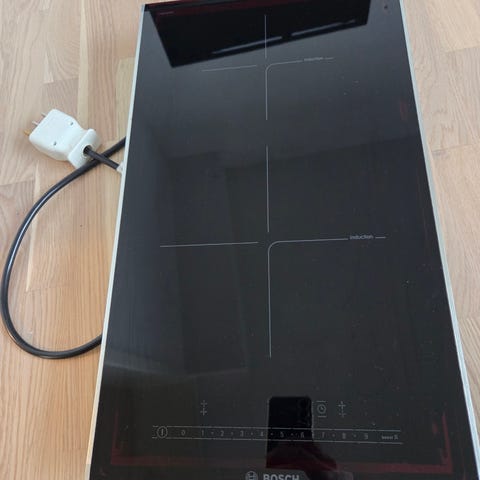 Bosch induksjonstopp med glasskeramisk overflate. Fire kokeplater med berøringskontroll. Egnet for innbygging i kjøkkenbenk. Passer for effektiv og presis matlaging.