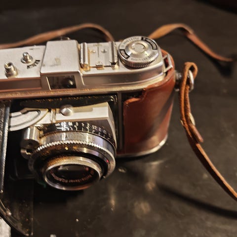 Zenit kamera med flere utskiftbare objektiver. Kameraet har mekanisk betjening og klassisk design. Objektivene varierer i brennvidde og størrelse, egnet for ulike typer fotografering. Kameraet er analogt og passer for brukere som ønsker å fotografere på film.