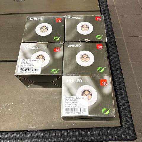 Var koplet til LED-panel i himling, men så trengte vi dimbare, så disse ble byttet ut.