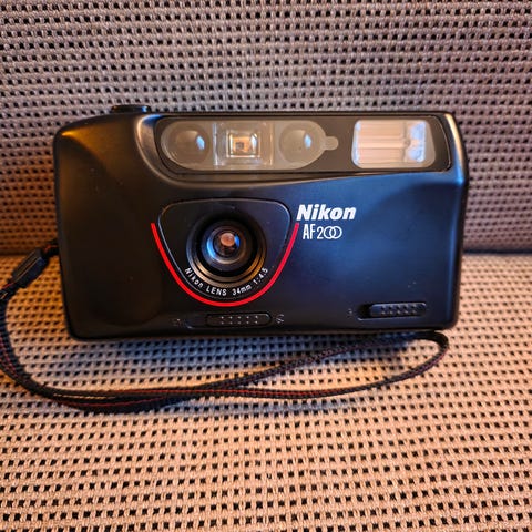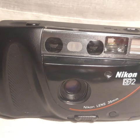 Nikon AF240sv analog kamera. Testet og fungerer perfekt, inkludert blits. Vedlagt er en bilde, tatt med dette kameraet. Kameraet leveres komplett med håndleddsstropp. Kameraet bruker 2x AA-batterier og 35 mm film. Det tar flotte bilder. 📸
