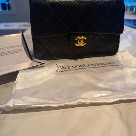Chanel vintage double flap veske i medium i nydelig lys kremfarge. Vurderes solgt. Kjøpt hos volounge for 1,5 år siden. Ikke brukt av meg dessverre. Ekstremt fin stand! Alt fra kjøp følger med.