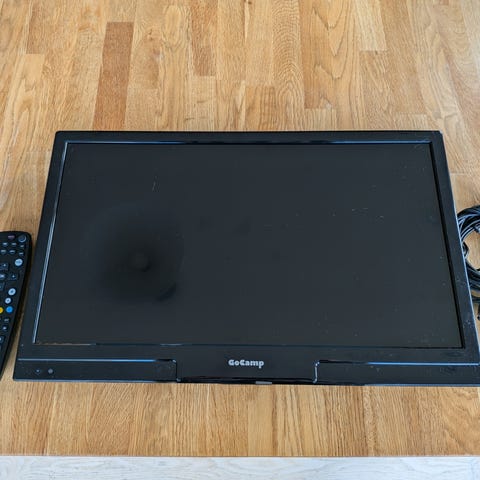 Selger en kompakt 22-tommers Finlux Smart-TV – ideell for steder med 12V strømtilgang.