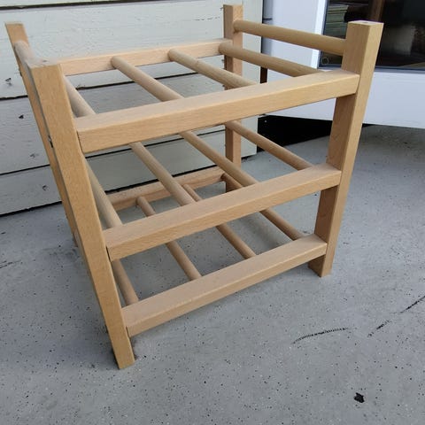 Vinstativ i tre med platt til 10 flasker vin