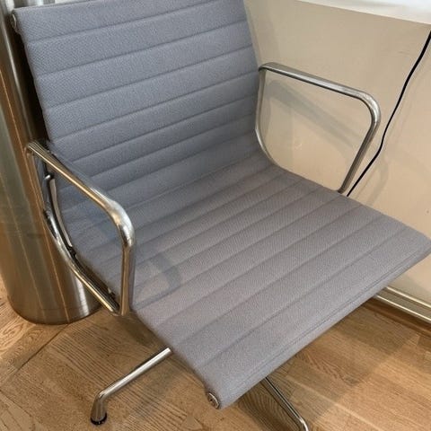 Ergonomisk design: EA108-stolen kombinerer et polstret sete med en lett ramme i aluminium, noe som gir både komfort og god støtte i lange møter.