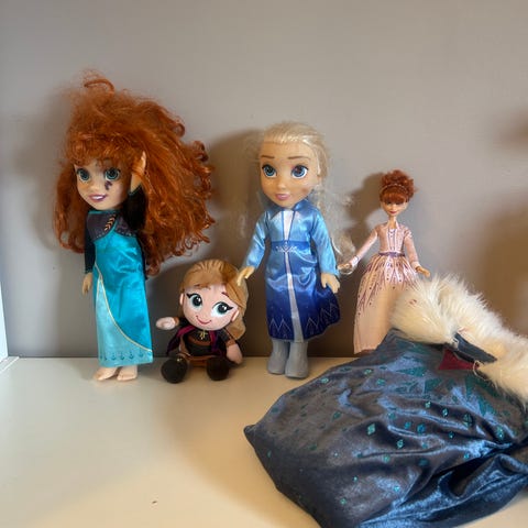 Disney Frost tøydukker, walkie-talkies, smykkeskrin med lyd og bevegelse, en Frost lexibook (pc) på norsk fra 3-8år ca med forsjellige spill