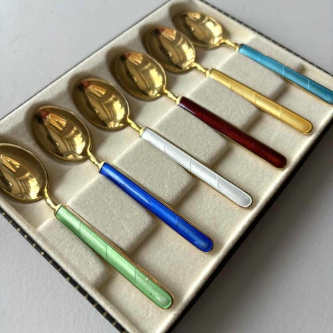 6 små forgylte mokkaskjeer i serien Auerhahn Tatjana Gold.