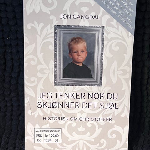 Selger boken «Jeg tenker nok du skjønner det sjøl – historien om Christoffer» av Jon Gangdal. Sterk, dokumentarisk bok om Christoffer Gjerstad Kihle-saken, der en åtte år gammel gutt døde etter langvarig mishandling. Boken belyser både det som skjedde i hjemmet og hvordan skole, helsevesen, barnevern, politi og rettsapparat håndterte saken, og stiller spørsmål ved hvordan slikt kan skje uten at noen griper inn i tide. Nominert til Brageprisen og regnes som en viktig bok om barns rettssikkerhet og systemsvikt.