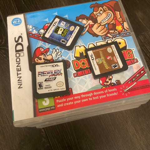 Nintendo DS Mario vs Donkey Kong Mini-Land Mayhem spill. Spillet er en del av Nintendo DS spillserien og tilbyr puslespillbasert gameplay med kjente karakterer fra Mario-universet.