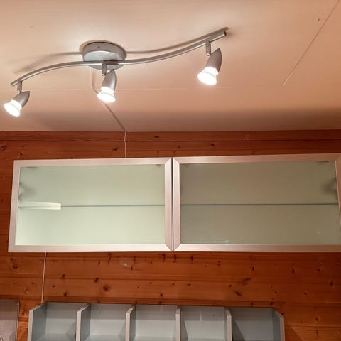 Bestå tv-benk / vegghylle i glans hvit på sider og hvit glass i midten selges for kun 999kr.
