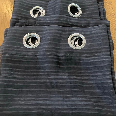 2 lystett gardiner i mørk grå farge selges for 400kr samlet.