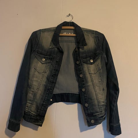 Jakken har fått noen små, lyse/hvite flekker på innsiden av stoffet (se bilde), som antas å være rester av vaskemiddel eller kalk som ikke ble skylt ordentlig ut i maskinen. Flekkene er små og sitter kun på innsiden av lommen/jakken, og påvirker ikke jakkens utseende ved bruk.