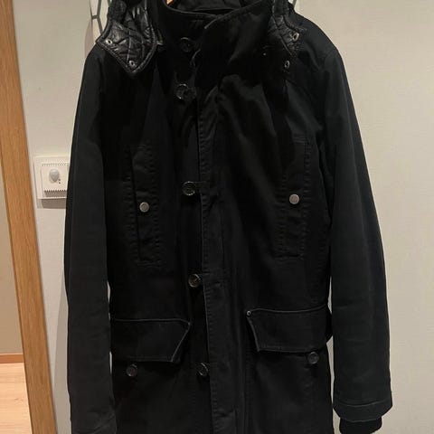 Ubetydelig brukt og ser ny ut. Nydelig vinrød farge og marineblått fôr. Størrelse 48.