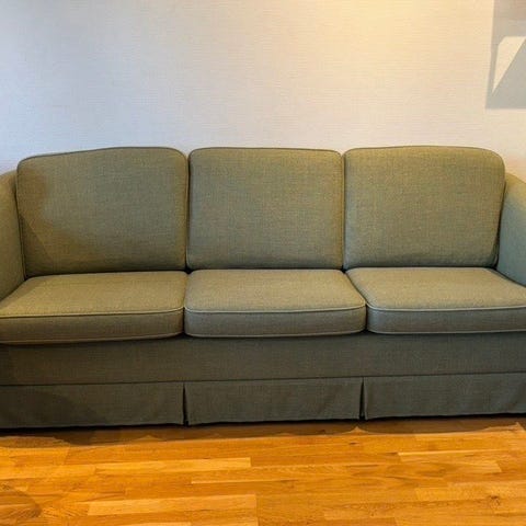 Lite bruk pen sofa i grønt ullstoff selges grunnet flytting.