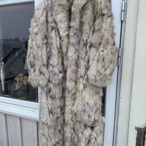 Selger en vakker og fyldig pelskåpe i helrykket blårev i en lys kremfarget/ivory tone. Dette er en klassisk, luksuriøs vintagekåpe med svært godt volum, bred sjalskrage og flott fall.