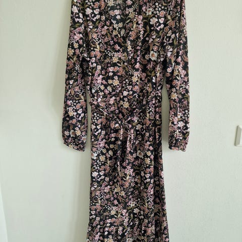 Ny lang kjole fra Only i str M. Naomi plisse kjole med blomsterprint og knytting i halsen.
