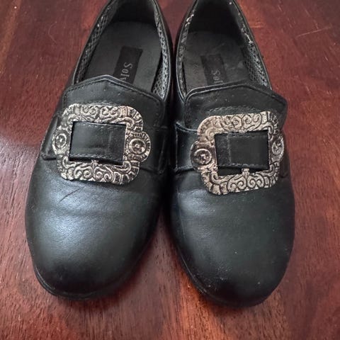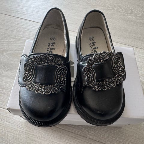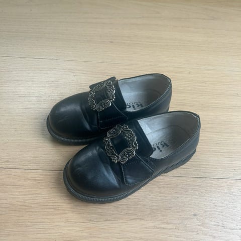 barnesko for jente i størrelse 30. Skoene er svarte med dekorativ spenne på toppen. Egnet for barn i denne størrelsen.