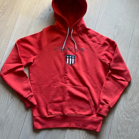 Comfortable GANT hoodie in a dark blue. It's been used a bit but still in good, wearable condition. Originally a size M, but it has shrunk a bit and fits more like a small. No major flaws, and a great everyday hoodie with GANT's quality feel