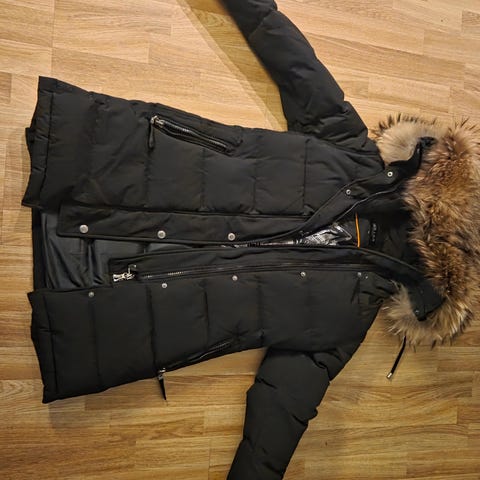 Superfin, klassisk looking dunparkas i str 38 ( liten i str, passer str 36 og )