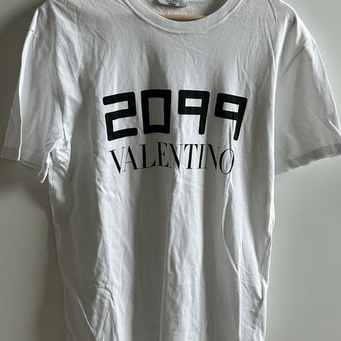 Valentino VLTN T-skjorte i hvit farge, størrelse M for herre. Laget av bomullsmateriale. T-skjorten har rund hals og trykk foran med VLTN-logo.