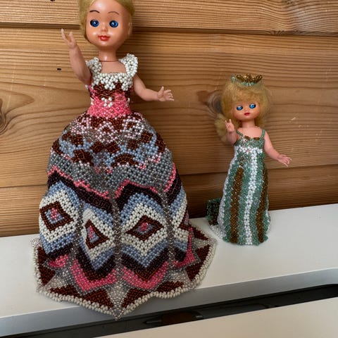 Gammel eldre dukke dukker leker leke figur figurer samleobjekt samlerverdi Italia dukkeklær dukkekjole hekling hekle original