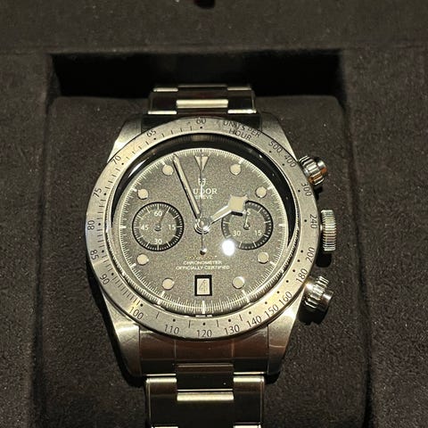 Til salgs en splitter ny Tudor Black Bay Chrono Limited Edition Pink Dial 41mm. Klokken er solgt ny hos Norsk AD slutten av 2025 og kommer med alt.