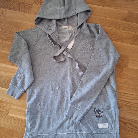 En fin Jean Paul bomullsjakke med to lommer fremme. Den går rett nedfirbi rompa på meg som er 175 cm høy.