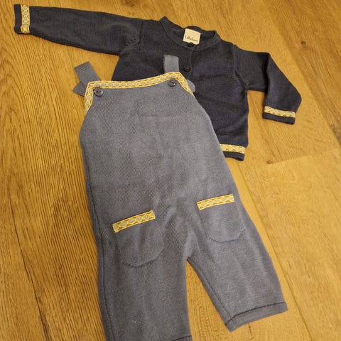 Barneklær sett i størrelse 74 for unisex. Inkluderer en polstret dress med glidelås og en fleece dress med glidelås. I tillegg er det en lett jakke med knappelukking. Materialene inkluderer polstret ytterstoff og myk fleece på innsiden for varme og komfort. Klespakke yttertøy. Vinterdress fra pomp de lux, det andre fra cubus. Nypris 1200,-
