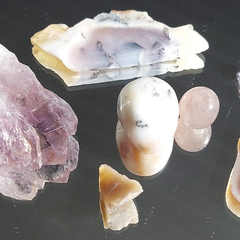Liten steinsamling. Vet dessverre ikke hva slags stein/ mineraler dette er. Størrelse se bilde med fyrstikk esken. Fine til den som samler eller å ha som dekorative objekter