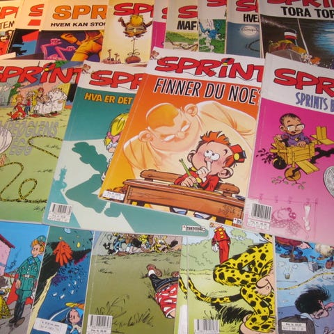 Sprint album 6, 18, 31, 36 utgitt 1987-1989. Som nye. Selges samlet kr 200 pluss porto evt hentes i Ski. Kan vurdere å selge enkeltvis.