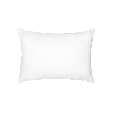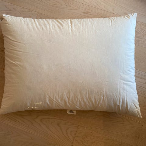 Stor og fluffy hotellpute. Har et gult trekk som kan følge me som ønskelig
