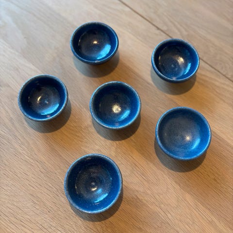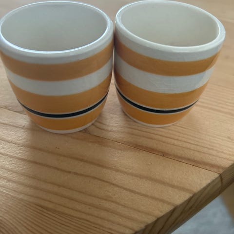 Selger to eggeglass i samme stil som de hollandske krukkene, kjøpt nye for ca 25 år siden. Selges samlet for kr 30
