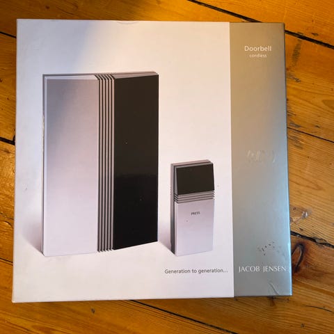 Jacob Jensen ringeklokke med inne og ute del på batteri. Fungerer perfekt. Design ringeklokke som tar seg bra ut på veggen.