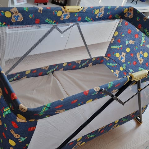 Selger en barnesang som er blitt brukt til min niese når hun har vært på besøk. Sengen er lite brukt, og i god stand. Det har ikke vært mulig å finne noen synlige skader på den, utenom noen få flekker på undersiden av madrassen. Sengen er fra dyrefritt og røykfritt hjem. Sengen er meget lett og åpne lukke.