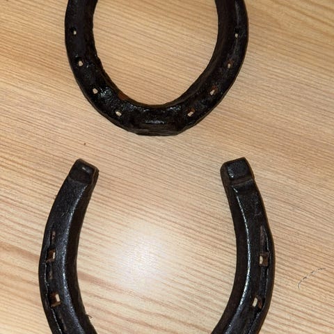 Den andre er som brukt/orgknal hedtesko/lykke sko som kan henges på vegg/hytte eller ute i hagen…