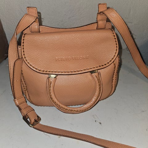 Lekker Michael Kors veske / sekk i lær i beige farge med stropper i benhvitt og korallfarget stoff. Gull på glidelås og logo.
