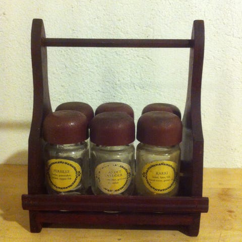 Retro krydderbeholder / krydderstativ fra 80-tallet i original emballasje selges.