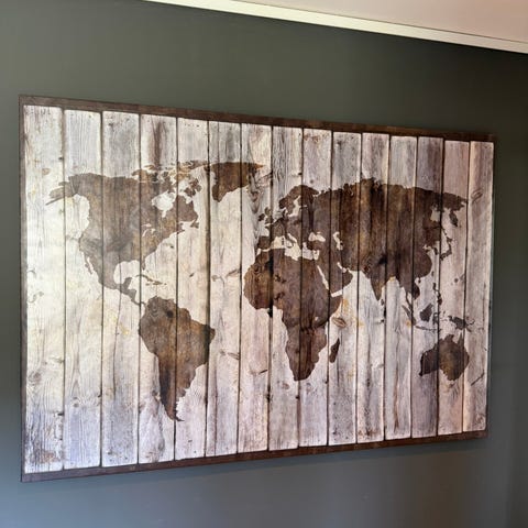 IKEA dekorasjonsbilde med motiv av ein rød bil og surfebrett. Bilderamme i sølvfarge. Mål på bilde og ramme 140 cm x 100 cm🖼️ må helst hentast☺️