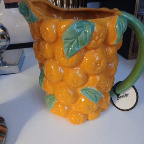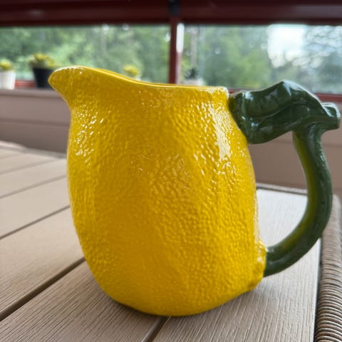 Utrolig fresh og vakker sitronmugge i håndlaget keramikk! Perfekt for å dekke et sommerlig bord, eller bare som pynt i hjemmet. Rommer 1,5L og bør vaskes for hånd. Har dessverre ikke fått brukt den, så den fortjener et nytt hjem!