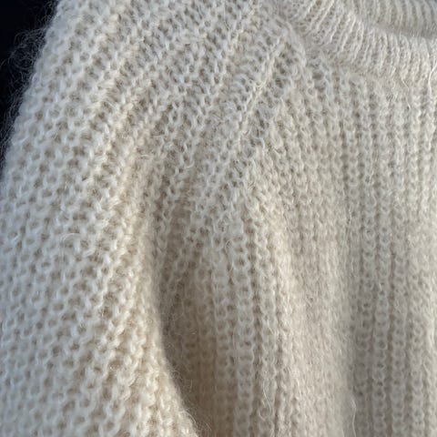 Helt ny hjemmestrikket genser. Nydelig hvit/offwhite lieve mondial garn, myk genser. Den er god i størrelsen kan fint brukes i xl også.