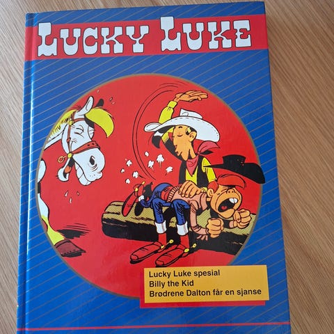 Lucky Luke tegneseriehefter med ulike titler som Billy the Kid og Brødrene Dalton Blir Kurert. Passer for samlere som er interessert i klassiske tegneserier og komiske western-tema.