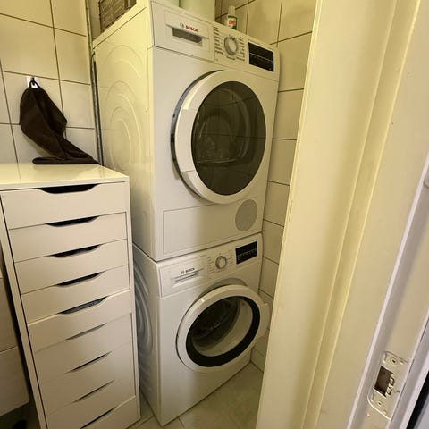 kombinerte og intergrerte vaskemaskinen og tørketrommelen fra Beko, vasker og tørker du klærne dine i én og samme runde. ca 81x59 cm.
