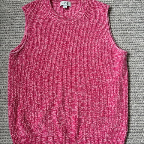 Dyp blå strikketopp/-genser i tynt mettalisk garn fra COS. Lekker til fest.