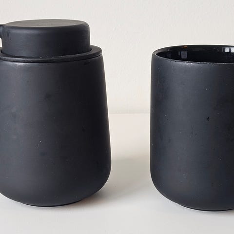 Sort baderomshylle.