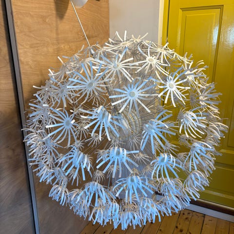 Pinne i rustfritt stål. Beregnet til å tre noe igjennom som en wire eller lampeledning. Har totalt 8 stk. Ubrukt.
