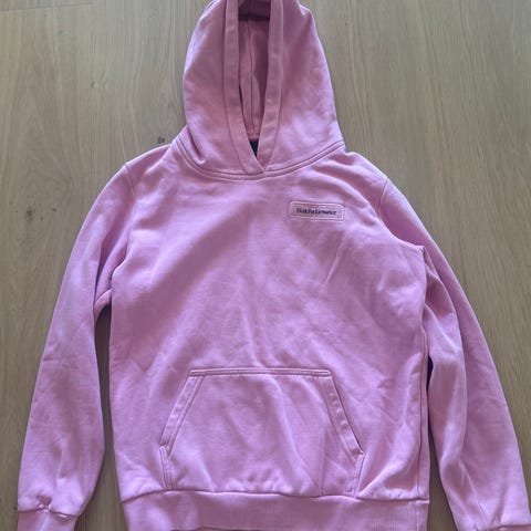 Peak Performance hettegenser i størrelse 160 for jente. Genseren er pudderrosa og laget av bomull.