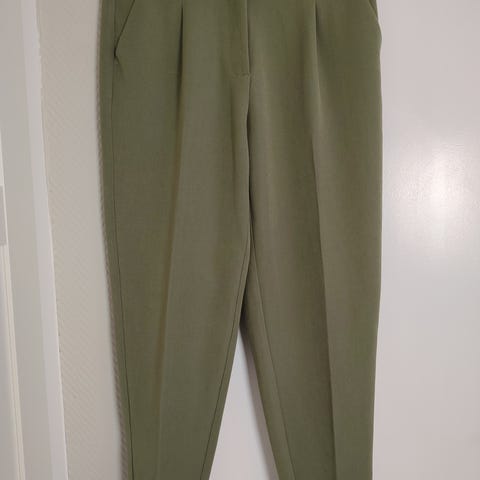 Nydelig lys grønn bukse! Brukt noen få ganger, selges da den ikke blir brukt! Litt tungt stoff som faller fint! Strikk i livet og lommer i sidene!