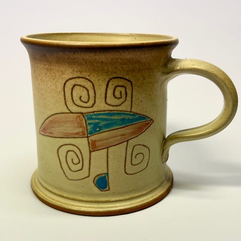 Retro keramikk krus. 70talls. Olivengrønn/brune