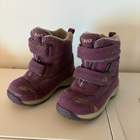 ECCO vinterskosko i størrelse 22, unisex modell. Skoene har en mørk farge med borrelås for enkel justering og påkledning. Fôret er mykt og gir varme, perfekt på kalde vinterdager. Yttersålen har godt mønster for grep.
